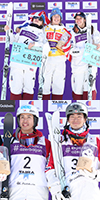 | ID one スキー男女表彰台 5/6 女子 優勝 Yulia Galysheva (Kazakhstan) 3位 Jaelin Kaouf(U.S.A.) 男子 優勝 Mikael Kingsbury (Canada) 2位 Walter Wallberg (Sweden) 3位 Daichi Hara(Japan) |