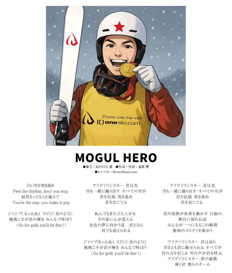 | このビートが、限界の壁を打ち破る。人生のすべてを懸ける。 その一瞬のドラマを、あなたは「音」で感じたことがありますか? ID ONE SKI で挑戦するすべての選手が「ヒーロー」なのです。 モーグルシーンを「世界」へ、 この応援歌は、単なるBGMではありません。 アイディワン選手の不屈の精神と勝利への思いを、 音楽という共通言語で世界に発信する「響」です。 この曲を聴き、歌い、広めることが、モーグル界の新しい力になります。 応援をお願いします。 https://linkco.re/EZpCRAEa >詳細はこちらから |