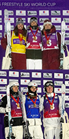 | ID one スキー男女表彰台 5/6 女子 優勝 Yulia Galysheva (Kazakhstan) 3位 Jaelin Kaouf(U.S.A.) 男子 優勝 Mikael Kingsbury (Canada) 2位 Walter Wallberg (Sweden) 3位 Daichi Hara(Japan) |